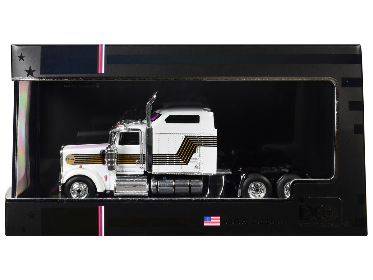 - 1995 Kenworth W900 Truck Tractor White with Black and Gold Stripes 1/64 Diecast Model by IXO Models