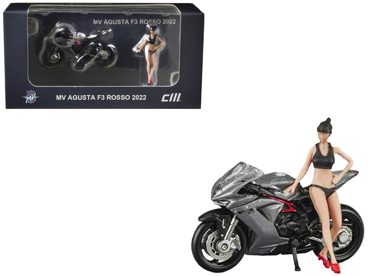 2022 MV Agusta F3 Rosso Motorcycle Silver Metallic with Figure 1/64 Diecast Model by CM Model