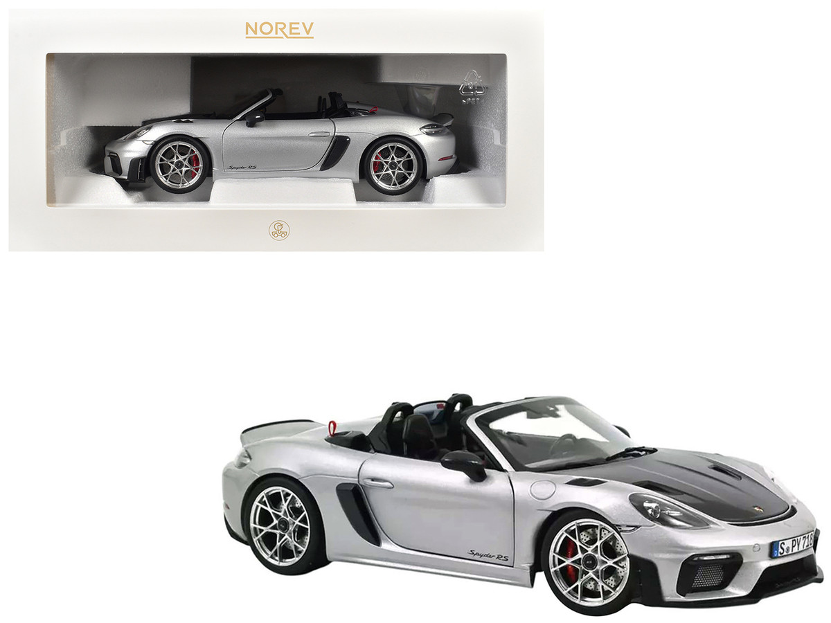 2023 Porsche 718 Spyder RS Weissach Pack GT Silver Metallic with Carbon Hood 1/18 Diecast Model Car by Norev