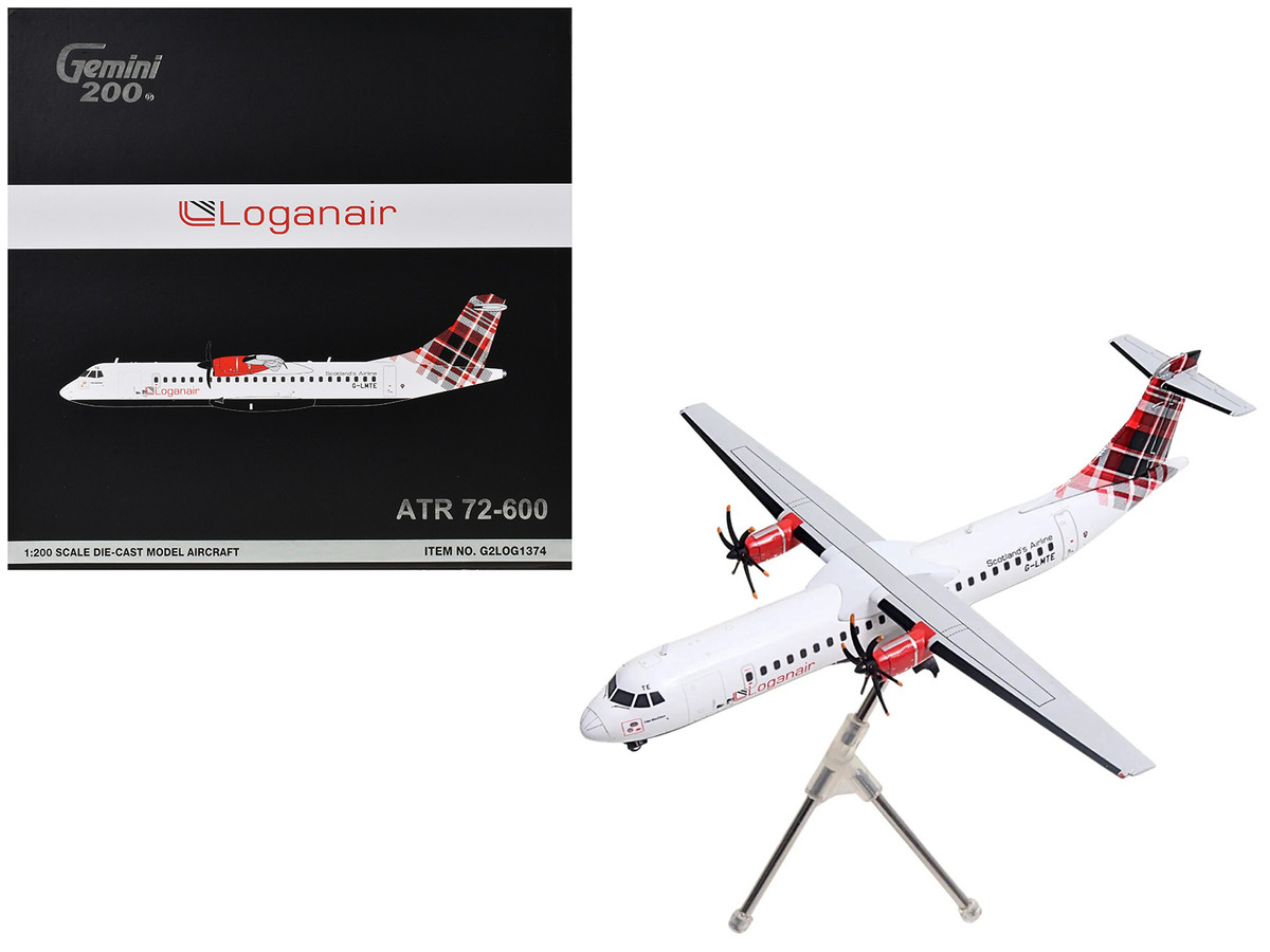 - ATR 72-600 Commercial Aircraft "Loganair - Scotland's Airline" (G-LMTE) White with Red Plaid Tail "Gemini 200" Series 1/200 Diecast Model Airplane by GeminiJets