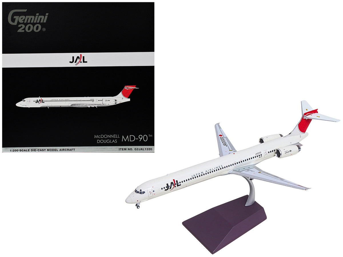 - McDonnell Douglas MD-90 Commercial Aircraft "Japan Airlines" (JA002D) White with Red Tail "Gemini 200" Series 1/200 Diecast Model by GeminiJets