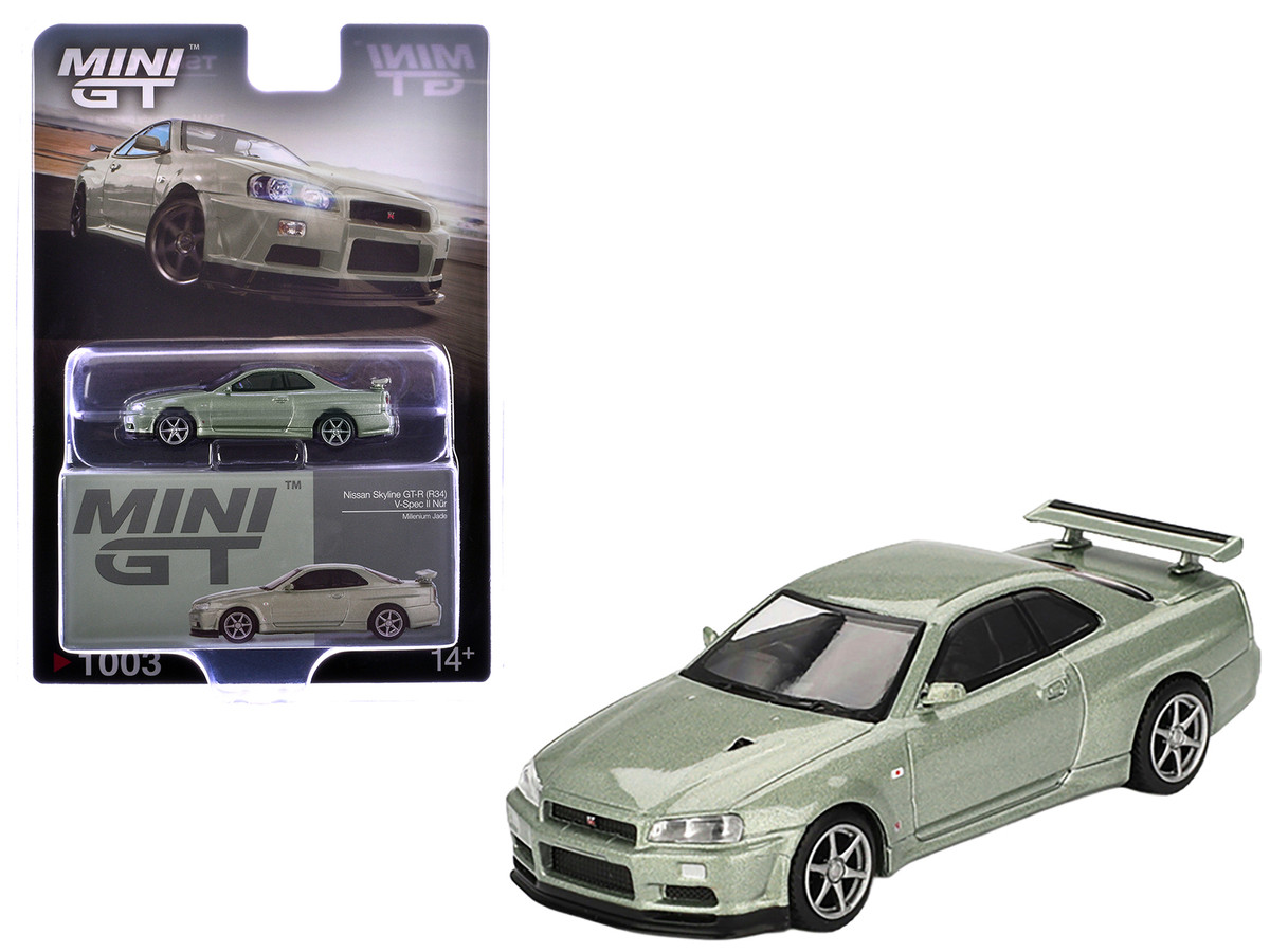 - Nissan Skyline GT-R (R34) V-Spec II Nur RHD (Right Hand Drive) Millenium Jade Metallic Limited Edition 1/64 Diecast Model Car by Mini GT